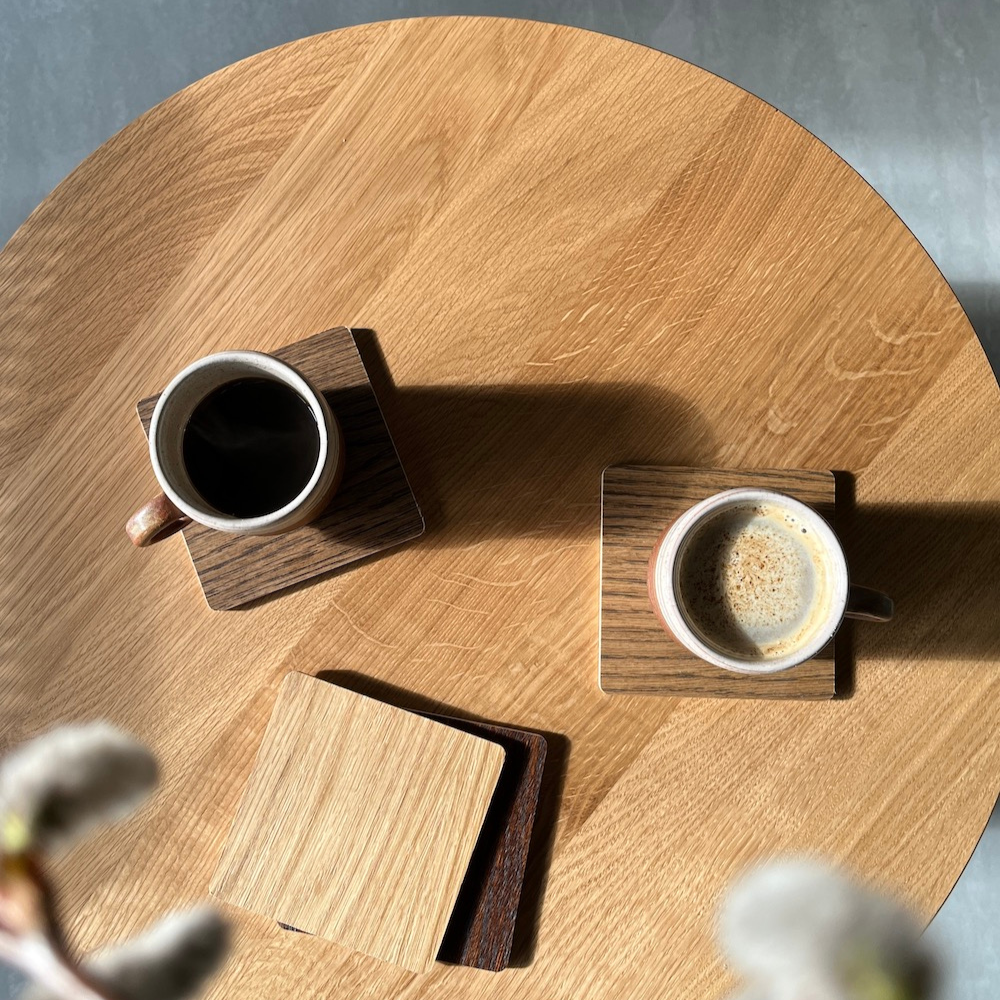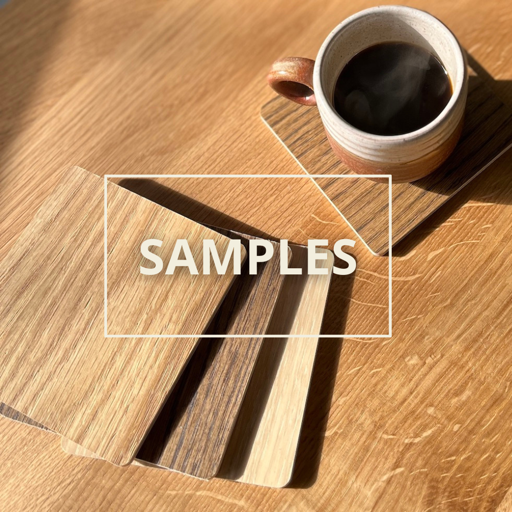The sample set includes 4 tiles measuring 10 × 10 cm with colours applied on both sides (8 colours in total). The colours are applied to double-sided veneered hardwood plywood. Despite our best efforts to match the real colours as closely as possible, please note that the samples are for reference only and minor differences in colour saturation are acceptable. After choosing your preferred colour, the tiles work perfectly as coasters for cups and mugs.